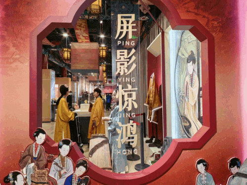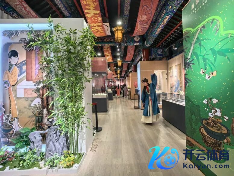 与此同期,“屏影惊鸿——雍正十二好意思东谈主图岁时雅韵展”在圆明园博物馆最上楼二层开展。《胤禛十二好意思东谈主图》原枚举于圆明园深柳念书堂围屏,画中东谈主物品茶、不雅书、赏蝶、对镜,衣饰纹样小巧细密,暗八仙、缠枝莲、福寿纹等尽显清代工艺之好意思。本次展览通过1:1非遗收复好意思东谈主衣饰与配饰,历经半年考证复刻,完满还原画中衣纹、发饰、首饰细节,点翠步摇、福寿发簪、莲花耳环等十余件复刻首饰同步展出,让不雅众近距离晓悟清代宫廷好意思学的深通匠心。