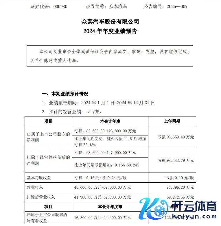 本岁首,众泰汽车的近况也激发了一波怜惜。1月22日,众泰汽车发布2024年年度事迹预报,“七年暴亏286亿元”成为重要词被多家媒体报说念转载。