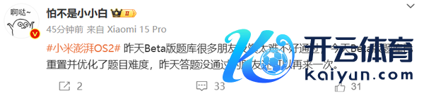 【CNMO科技音书】11月12日,数码博主@怕不是小小白 示意,好多网友反映小米澎湃OS 2 Beta版题库太难,难以通过。今天,Beta版题库已重置并优化了题目难度,答题没通过的一又友不错再试一次。