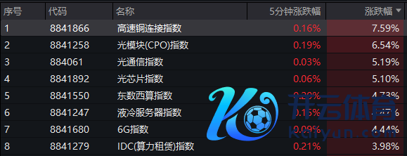 高速铜连合倡导近期备受市集挪动,据悉,铜连合时代剿袭铜质电缆,代替传统的光纤连合,不错杀青芯片之间的高速数据传输。受此影响,通讯开导板块全体强势,铜缆高速连合、光通讯、光模块(CPO)、光芯片等倡导涨幅居前,板块内多只个股涨停。