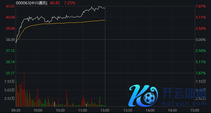 中兴通讯盘中拉升,放荡午间收盘,涨幅扩大至7%以上,总市值1799亿元。