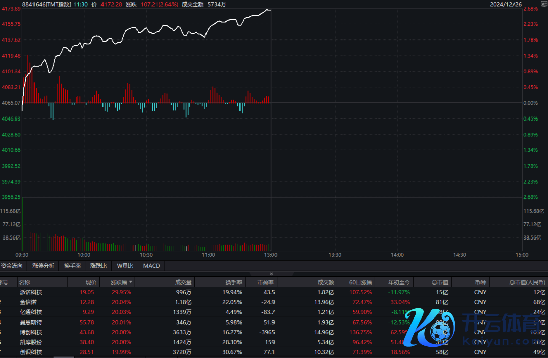 板块方面,高速铜连合倡导、光模块、光通讯、6G等倡导板块涨幅居前,板块内多只个股涨停,中兴通讯盘中拉升,股价创2023年8月以来新高。