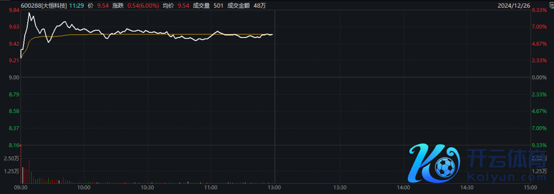 大恒科技今天上昼股价大涨,盘中涨幅一度稀薄9%。