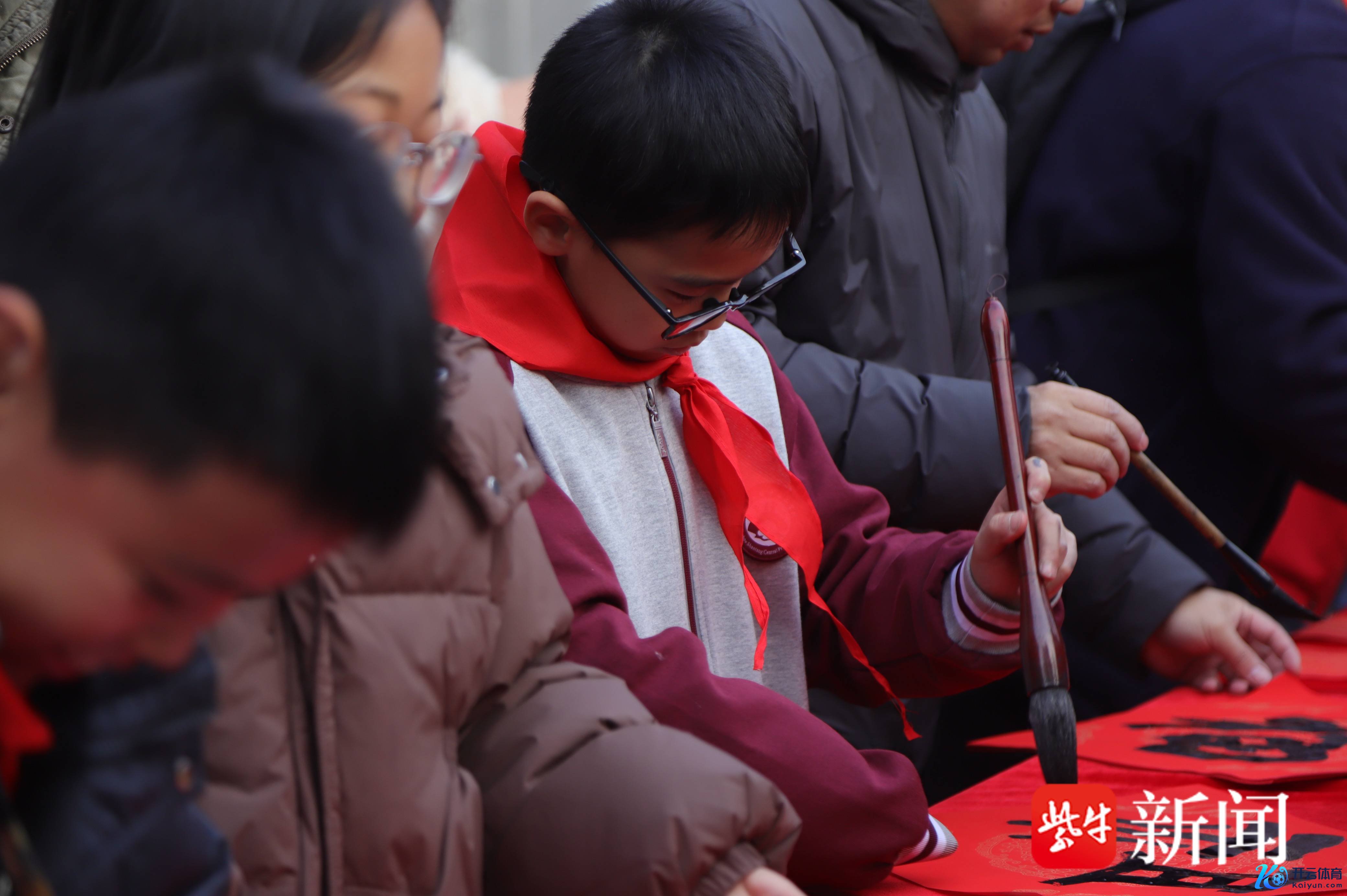 “看着他们写,嗅觉格外享受。这才是过年该有的腻烦!”行为现场,浓郁的墨香在空气中弥散。大书道家们动身点垂范,只见他们气定神闲,手中的羊毫似有灵韵,饱蘸墨汁后于红纸上纵横飞奔,笔锋强劲有劲又不失灵动倜傥。“小小书道家”们也绝不怯场,在前辈们的指导下,一笔一画地书写着,蘸墨、起笔、运笔、收笔一气呵成,稚嫩的脸庞上尽是讲求与持着,一幅幅蕴含着对新春的好意思好祈愿的对子佳作很快便在他们的笔下应时而生。“好多东谈主表扬咱们,群众排着队领取咱们写的对子和‘福’字,这让我感到非常振作和骄矜,但愿咱们的祝贺能传递到千门万户!”五(2)班谭佳梦说。