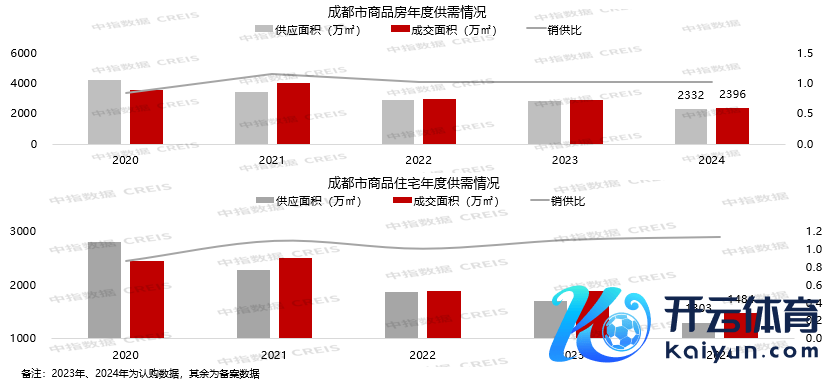 行业深度调度布景下,成齐阛阓仍保持讲求韧性。在4月、9月重磅战术复古下,罢了了全年阛阓的雄厚以及四季度的大幅度销售翘尾。2024年景齐商品房销售面积2396万 ,商品住宅销售面积1484万 ,住宅成交量流畅3年保持寰宇第一。