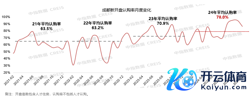 据监测统计,2024年平均认购率达78.0%,较客岁进步7.1个百分点。12月成齐监测开盘套数约1231套,环比持平;平均认购率约为87%,位于高位。
