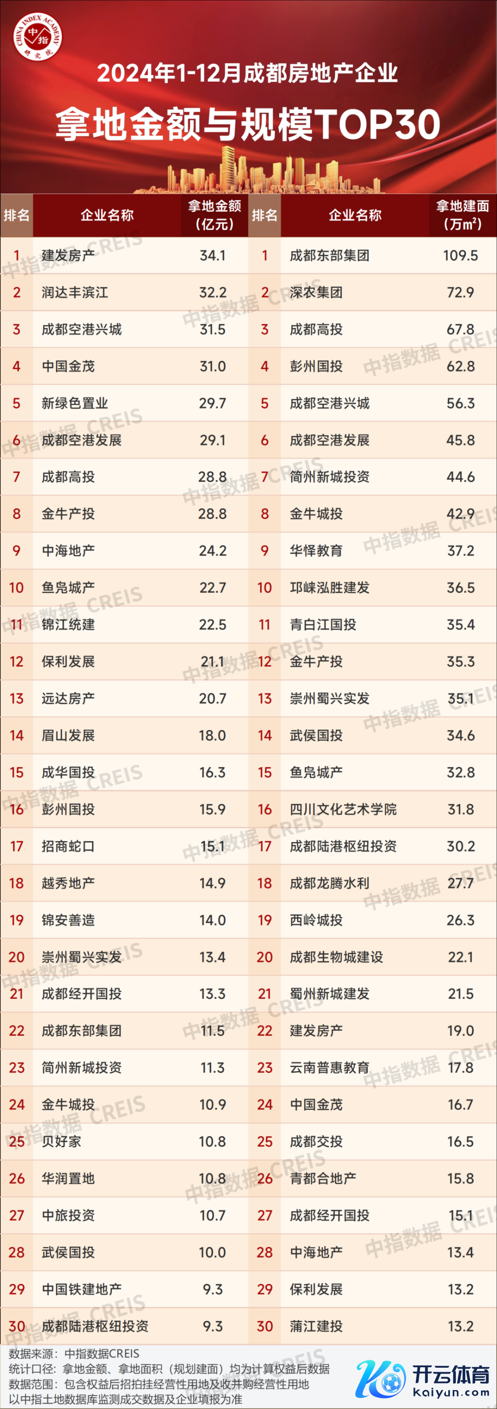 建发房产以34.1亿元位列在蓉及在川拿地金额TOP1。成齐东部集团以109.5万 位列在蓉拿地规模TOP1。