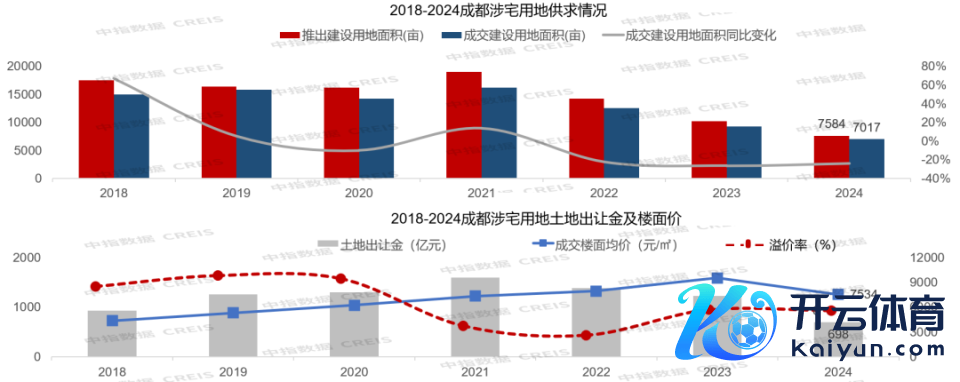 2024年涉宅用地推出设立用大地积为7584亩,成交7017亩,地盘出让金为698亿元,平均溢价率为8%。中枢区域高质地地块受追捧,锦江、高新、天府新区中枢区域地块经常高溢价成交,溢价率水平居寰宇前方。润达丰滨江2024年告捷斩获天府新区、锦江区优质地盘。