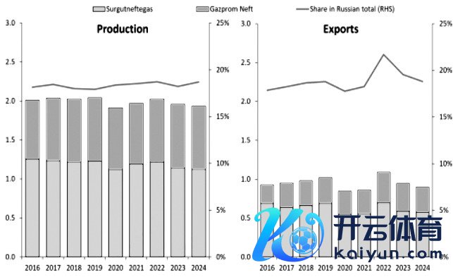 把柄Rystad Energy的统计数据,2024年俄罗斯原油产量在1030万桶/天傍边,占各人原油供应的13%傍边。俄罗斯自然气工业原油公司和苏尔古特油气公司及27家附庸公司当今仍是列入好意思国财政部国外钞票限制办公室(OFAC)的卓绝指定国民名单(SDN List)。数据知道,2024年,这两家公司的产量想到占俄罗斯原油总产量的近20%。