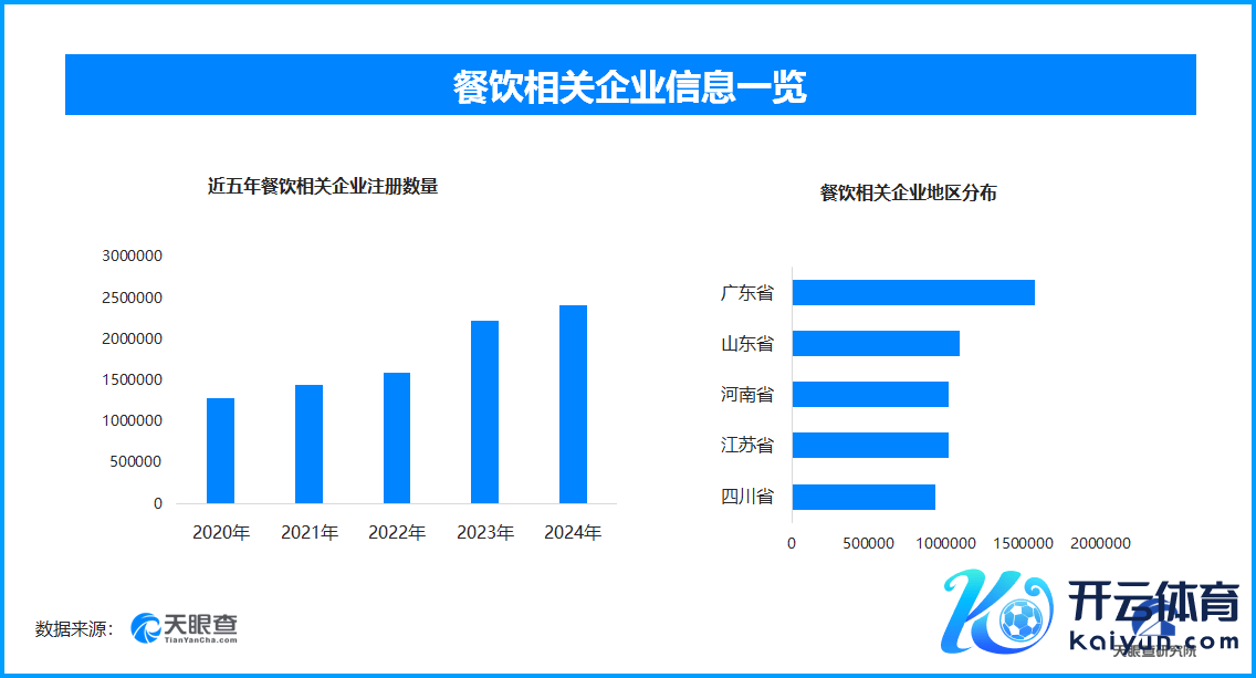 天眼查专科版数据显现,限制目下我国现有在业、存续情状的餐饮干系企业近1559.2万家。其中,2024年新增注册干系企业超240.9万家,从企业注册数目趋势来看,近五年间,餐饮干系企业的注册数目呈现出逐年增长的态势,并于2024年达到数目顶峰。