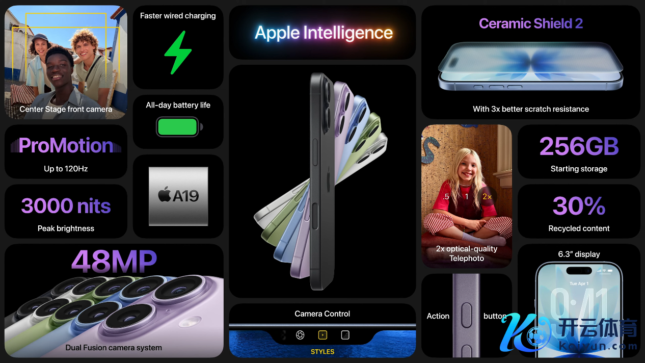 最大的体验升级莫过于ProMotion 自稳健刷新率和全天候透露屏的下放,终于也领有了丝滑畅达的最高120Hz体验。屏幕黑边缩窄,大小提高至6.3 英寸,峰值亮度达3000 尼特,反光减少了 33%。屏幕还配备了超瓷晶面板 2,抗刮划才气是上一代的 3 倍。