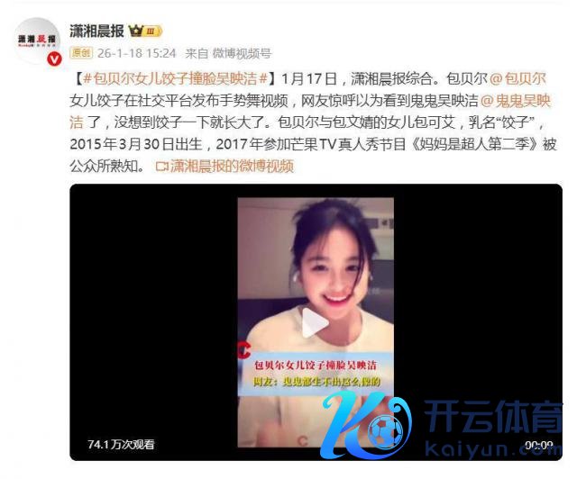 据网友 1 月 19 日爆料,包文婧在直播里讲述儿子饺子撞脸吴映洁的一段话,又让"星二代"饺子冲上了话题榜。