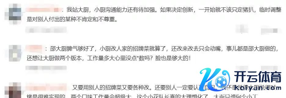 有东说念主质疑她的厨艺智力,以为在专科烹调中提议使用嫩肉粉是阑珊西宾和专科教导的施展,有东说念主责骂她不尊重传统和淳厚傅,在团队相助中过于自我。
