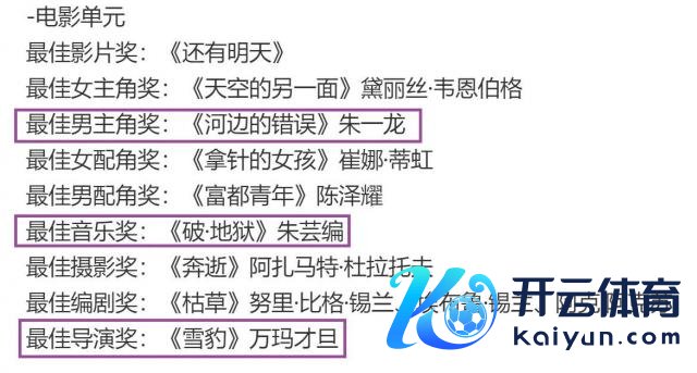 电影单位的 9 个奖项中,就莫得那么多中国影东说念主和作品获奖了,其中《破 · 地狱》拿下了"最好音乐",万玛才旦凭借《雪豹》拿下了"最好导演"。