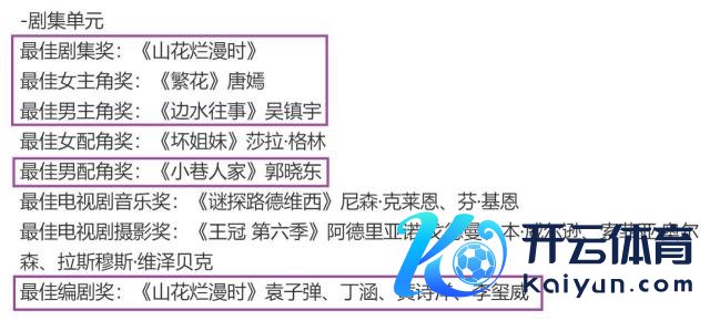 其实一年下来九游体育app娱乐,国内的电影、电视剧受奖礼照旧挺多的,惟有饱和优秀、接力大概遭受了好时机,总会拿奖的。