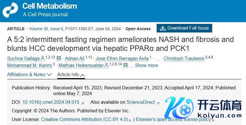 事实上,这不是第一次出现相干的论断。德国癌症经营中心的经营东说念主员曾在《细胞代谢》上发表过一项经营,经营称5+2轻断食法不错珍爱非乙醇性脂肪肝炎的发展,一经出现的肝炎和纤维化,通过范畴饮食也不错缩短发展成肝细胞癌的风险。