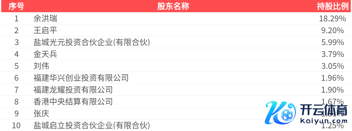 公司鞭策户数为1.68万户,前十大鞭策执股数目为6263.69万股现金九游体育app平台,占总股本比例为48.42%,前十大鞭策执股情况如下: